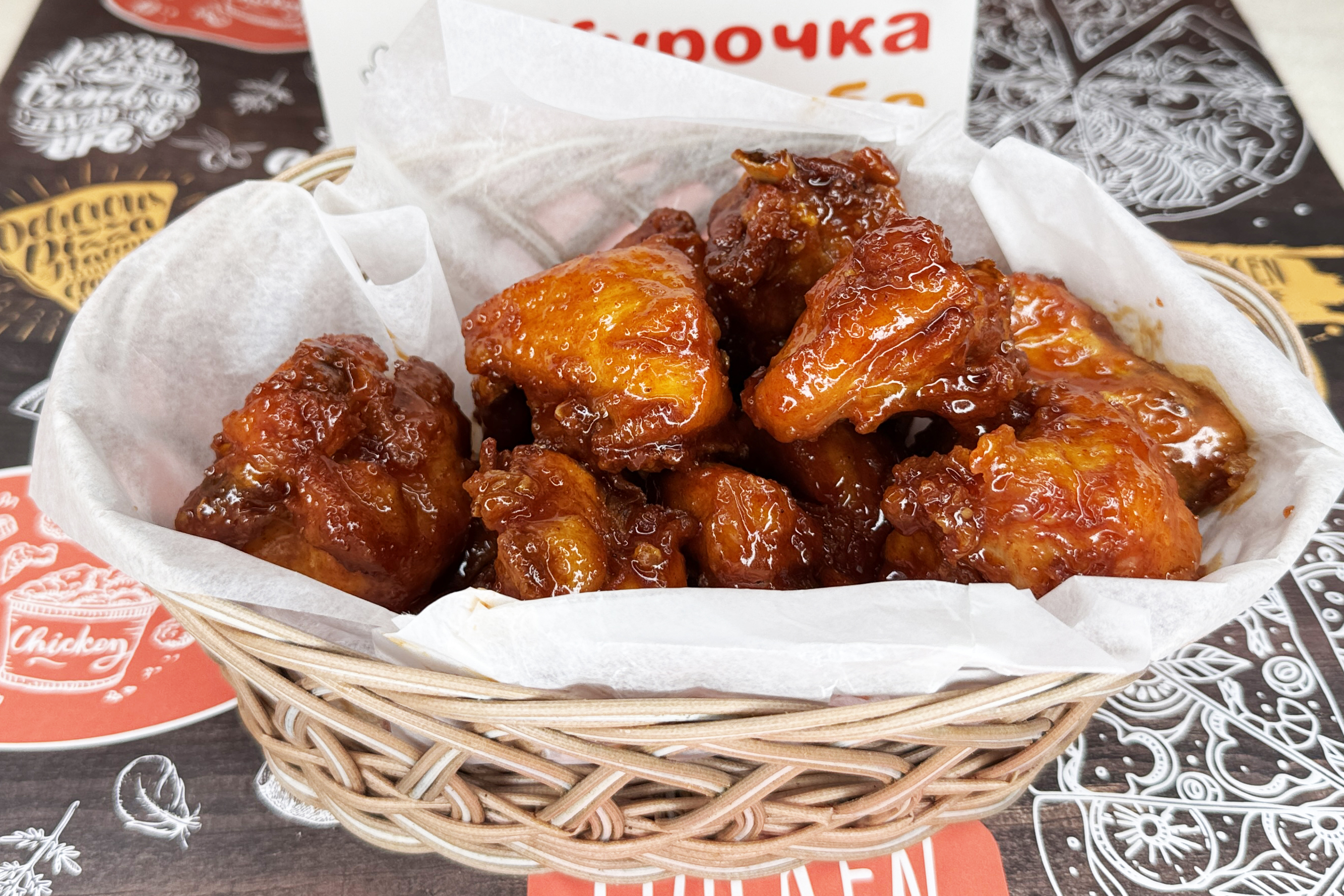 Кусочки курицы, жаренные во фритюре, в остро - сладком соусе.